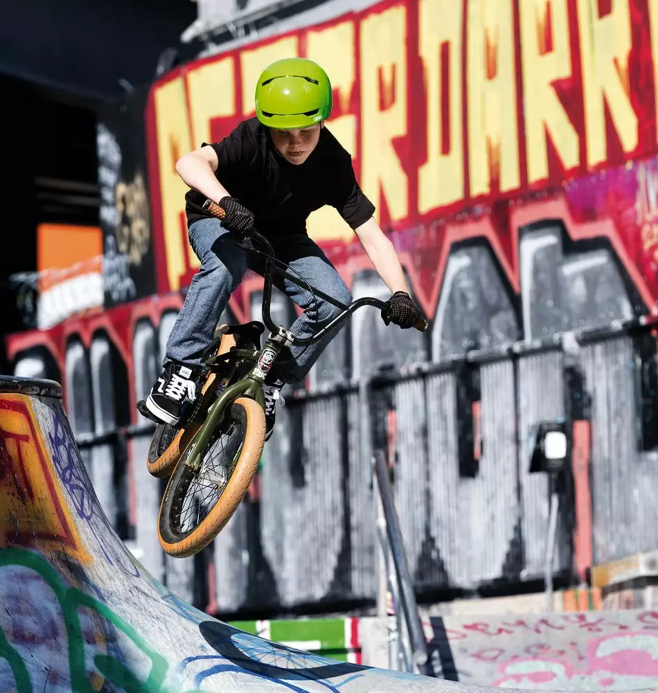 Scraper Kid 3.0 er målrettet alle unge stuntmen og stunt-piger, der foretrækker at tilbringe deres fritid op og ned ad halfpipe skaterrrammen eller offroad. En robust hjelm til dette formål, da den er udstyret med et bredt udvalg af ekstra ABUS features og er cool nok til altid at gøre en god figur.