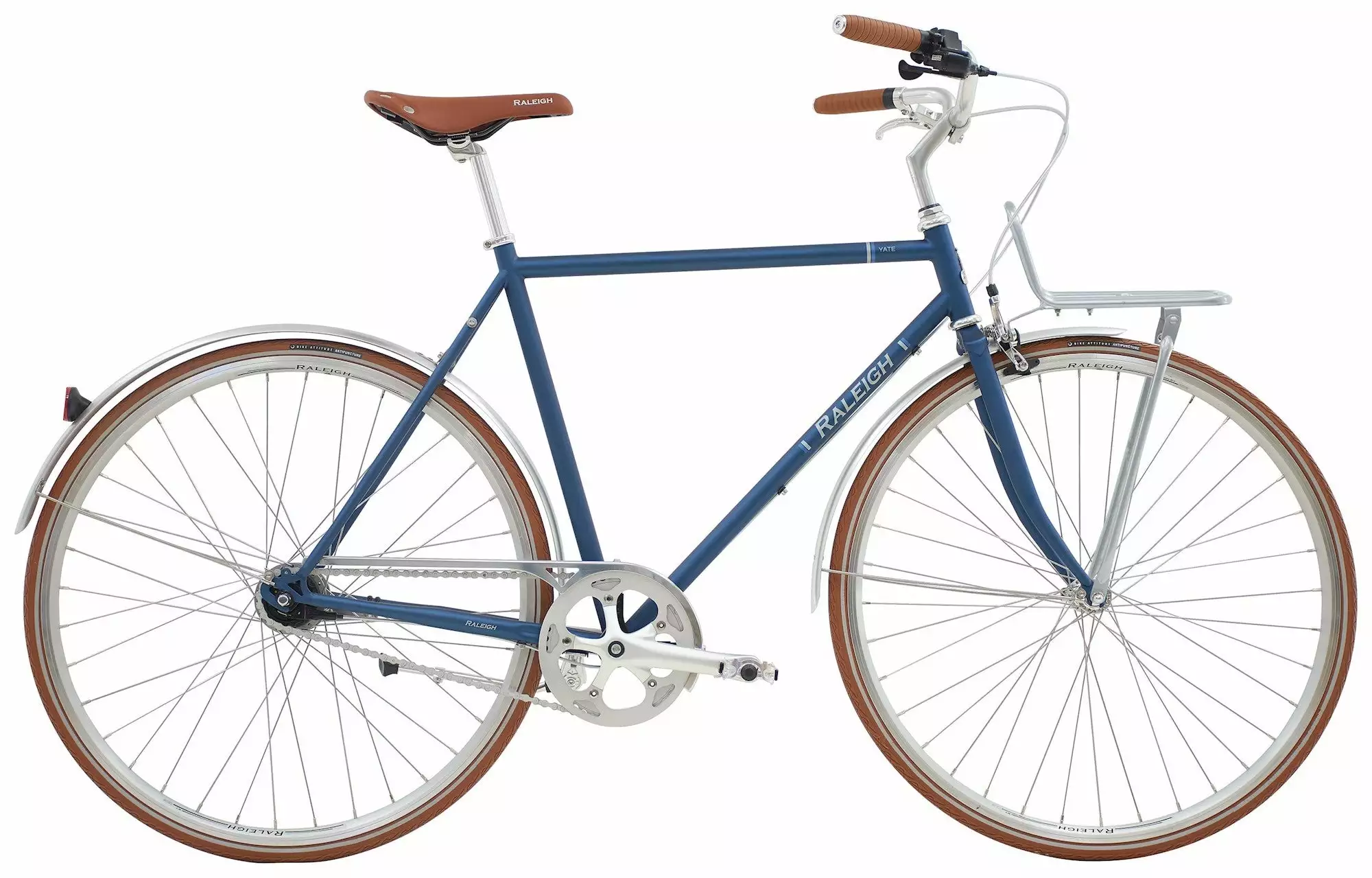 Raleigh Yate er en fremragende funktionel bycykel. Et stilrent design med alt praktisk udstyr på plads, betyder at det eneste du skal tænke på er at nyde turen gennem byens gader. Det unikke ved Yate Cargo modellen er, at den er udstyret med et stilrent frontlad, sæt en ølkasse på frontladet og du har din helt egen vintage forkurv.
